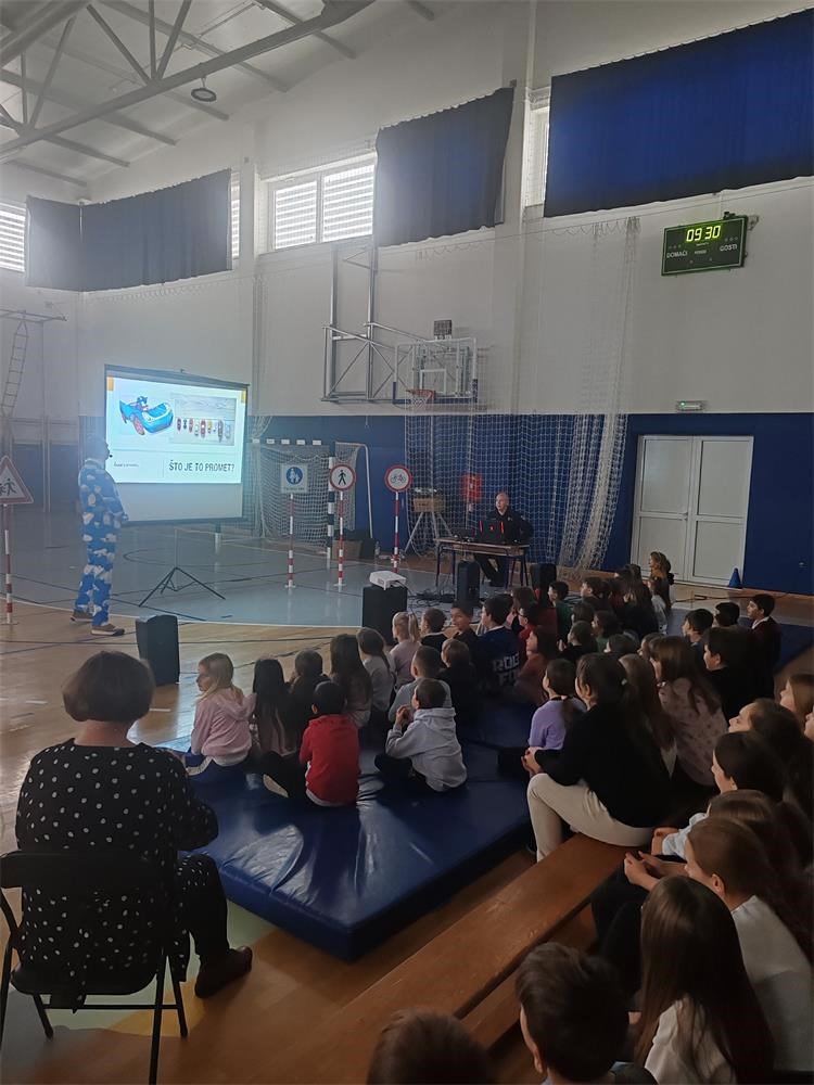 Program je započeo okupljanjem djece u školskoj sportskoj dvorani, nakon čega je sve prisutne pozdravio policijski službenik za prevenciju Službe prevencije Ravnateljstva policije. U uvodnom dijelu programa, kroz scenski prikaz naziva "Koracima malim i sigurnim po velikom svijetu prometa", 160-ak učenika nižih razreda educirano je o prometnoj kulturi, te poštivanju prometnih znakova i propisa.